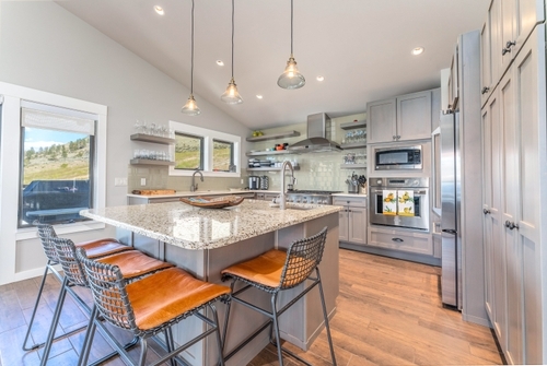 In the Barn, aviation-style folding garage doors open out to the courtyard, extending the interior space for larger functions, and capturing the view of the lake. Small balconies on the north side of the Barn and west side of the house provide views of gatherings and activities in the courtyard below. In less than a year since completion, Larc Hill Vineyard has become a prime destination in the Lake Chelan area.